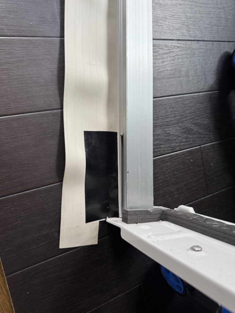 窓枠のビニール部分に破れがちょっとあった為、ガムテープで直します。パッパの寝室兼書斎なので見た目はどうでもいいです