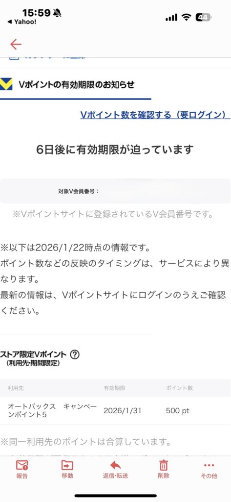 ある日突然のメールにてキャンペーンのポイントが6日後に切れますとの事。
