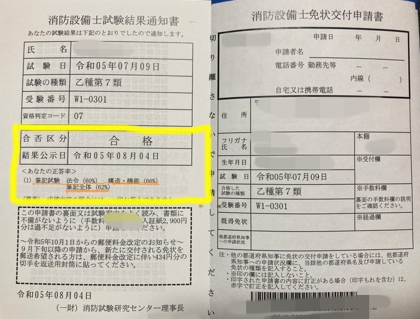 おふっ!めっちゃギリギリです。法令、構造機能どちらかを、もう1問でも間違っていたら不合格でした(笑)