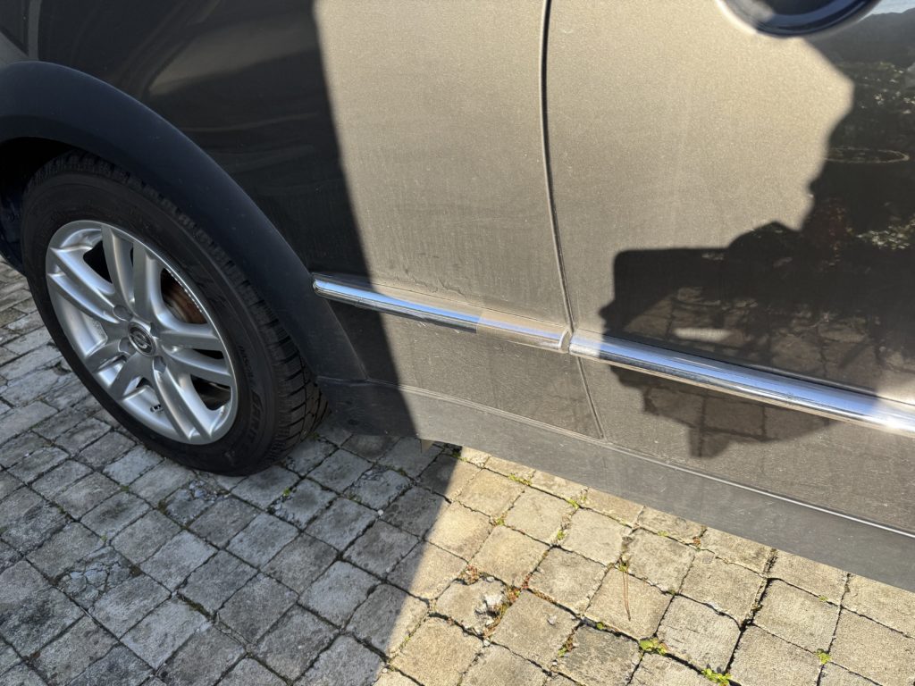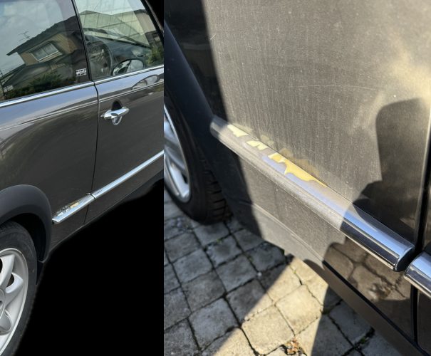 購入時から付いていたサイドモール!純正オプションかと思っていたが社外品の後付けパーツだったと発覚w しかも両面テープで貼っているだけみたい!